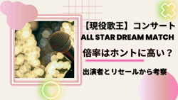 エンタメ 【現役歌王】日韓戦チケットの倍率は高い?出演者とリセールから考察 2025年11月1日に開催される【現役歌王 ALL STAR DREAM MATCH】東京国際フォーラム ホールAという大舞台で、日韓の歌王たちが集結するコンサートが開催されます。SNSでは「倍率ヤバすぎ」「当たる気がしない」といった声が飛び交っていますが、果たして本当に“激戦”なのか?今回は、出演者構成・リセール市場・ファン心理から冷静に考察してみます。 2025.09.19 エンタメ現役歌王